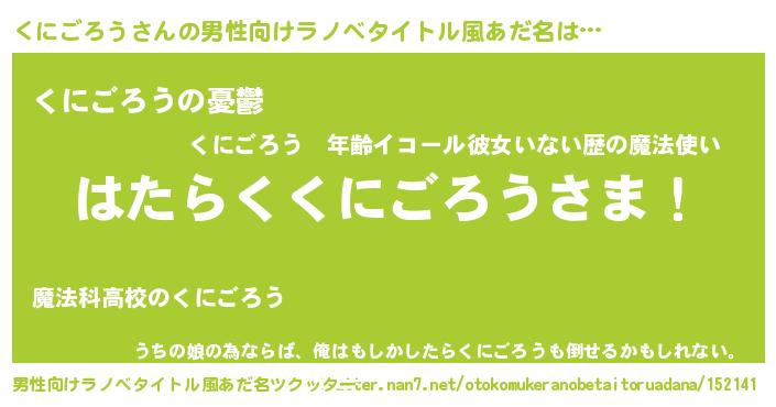| ファンタジー風あだ名 | 『クニフェル』『エターナルクニゴロウー』 |