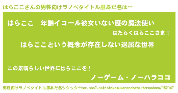 | 女子向けラノベタイトル風あだ名 | 『はらここの契約王妃』 |