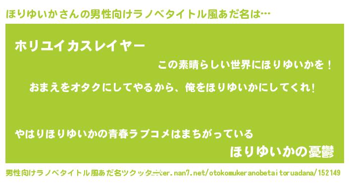 | 女子向けラノベタイトル風あだ名 | 『ほりゆいか夫妻のなれそめ』 |