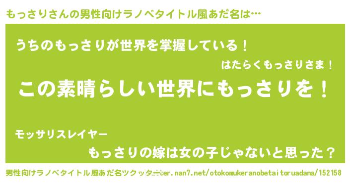 | 意味不明あだ名 | 『住所不定無職もっさり(11歳)』 |