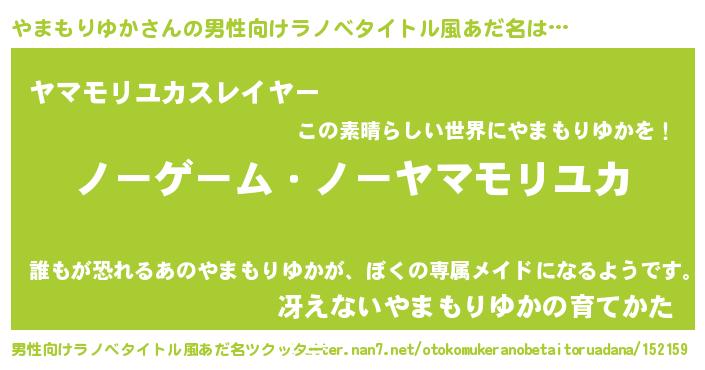 | 伝説のあだ名 | 『救世主となる錬金術士やまもりゆか』 |