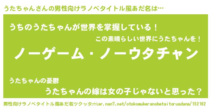 | 女子向けラノベタイトル風あだ名 | 『死神うたちゃんの再婚』 |