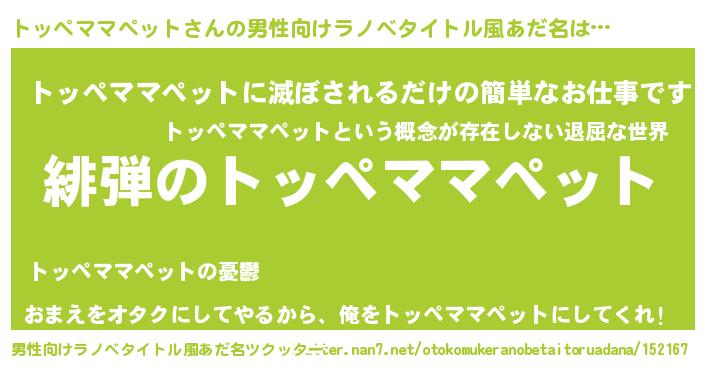 トッペママペットさんの男性向けラノベタイトル風あだ名をツクッター!