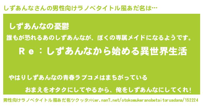 | 女子向けラノベタイトル風あだ名 | 『しずあんなストレイドッグス』 |