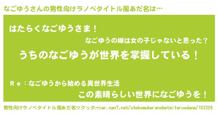 | 意味不明あだ名 | 『住所不定無職なごゆう(14歳)』 |