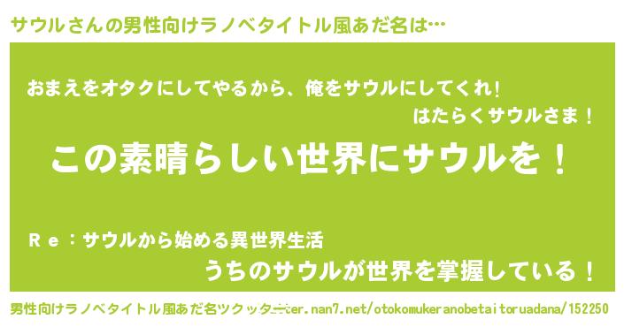 | 胡散臭い通販商品みたいなあだ名 | 『あなたにだけ特別に提供する100年もののヴィンテージワイン…その名も「サウル」』 |