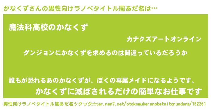| 女子向けラノベタイトル風あだ名 | 『かなくずは平凡を望む』 |