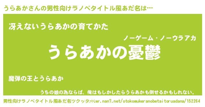 | 女子向けラノベタイトル風あだ名 | 『(仮)うらあかのやんごとなき事情』 |