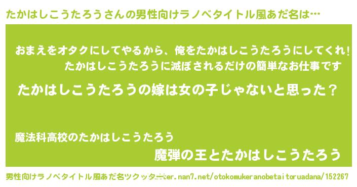 | 女子向けラノベタイトル風あだ名 | 『たかはしこうたろう様がみてる』 |