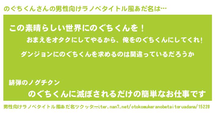 | 女子向けラノベタイトル風あだ名 | 『のぐちくんの卵を拾いまして』 |