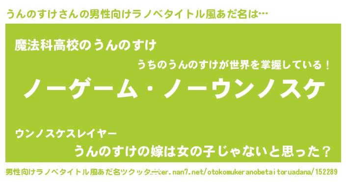 | ヒーロー風カッコイイあだ名 | 『慈愛の使者うんのすけ』『炎刃騎士ウン』 |