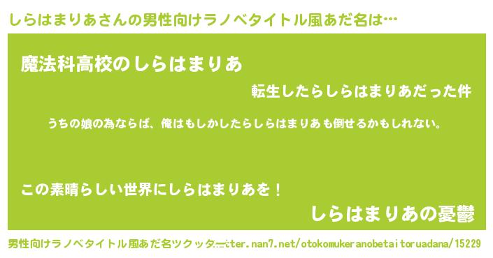 | 意味不明あだ名 | 『しらはまりあフォーエバー』 |