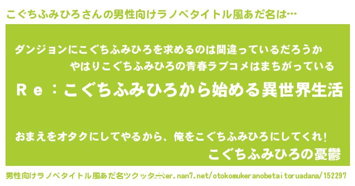 | 肩書あだ名 | 『こぐちふみひろ閣下』 |