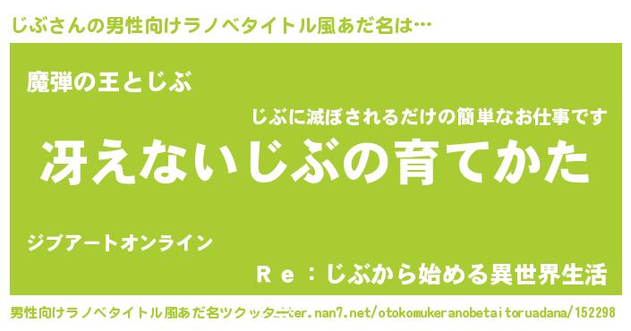 | 意味不明あだ名 | 『住所不定無職じぶ(4歳)』『自称じぶ』 |