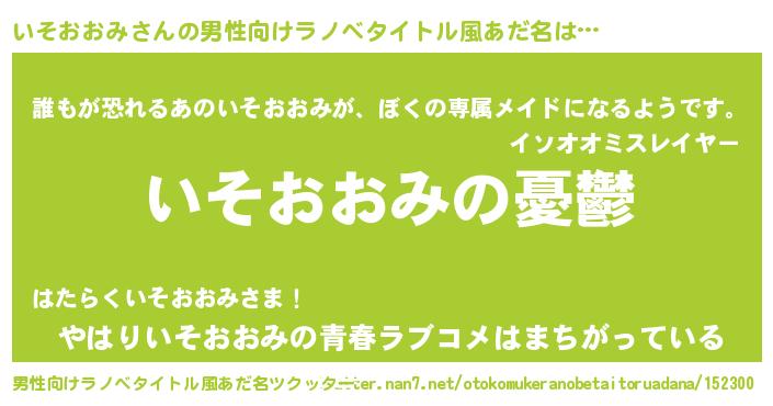 | 女子向けラノベタイトル風あだ名 | 『(仮)いそおおみのやんごとなき事情』 |