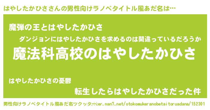 | 女子向けラノベタイトル風あだ名 | 『はやしたかひさなんてお断りですっ。』 |
