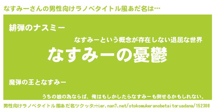 | 胡散臭い通販商品みたいなあだ名 | 『必ず成功するブレスレット…その名も「なすみー」』 |