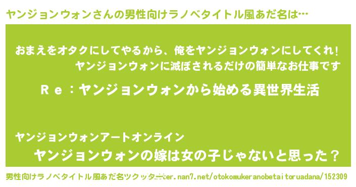 | 意味不明あだ名 | 『自称ヤンジョンウォン』 |
