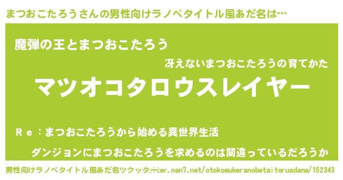 | 女子向けラノベタイトル風あだ名 | 『婚約破棄系悪役まつおこたろうに転生したので、保身に走りました。』 |