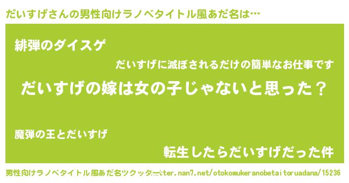 | 女子向けラノベタイトル風あだ名 | 『だいすげ様がみてる』 |