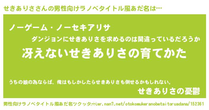 | 欧米人風あだ名 | 『せきありさ・ステッグマイヤー』 |