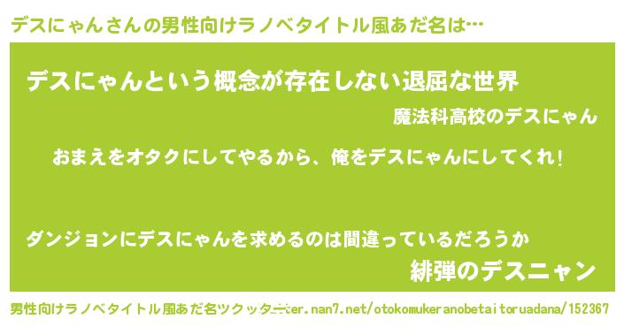 | ヒーロー風カッコイイあだ名 | 『友情の使者デスにゃん』『黄金騎士デス』 |
