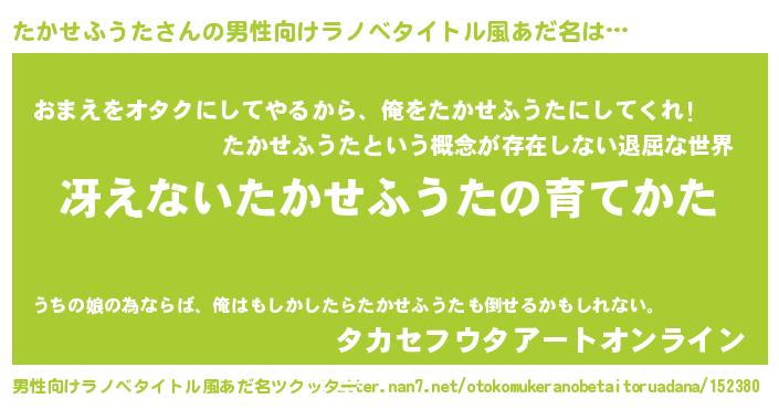 | ヘコむあだ名 | 『たかっふぃ~』『たかせふうた(苦笑)』 |