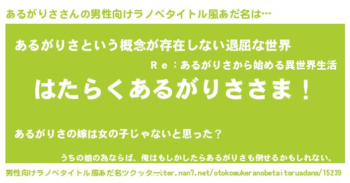 | 欧米人風あだ名 | 『アンジェラ・あるがりさ』 |