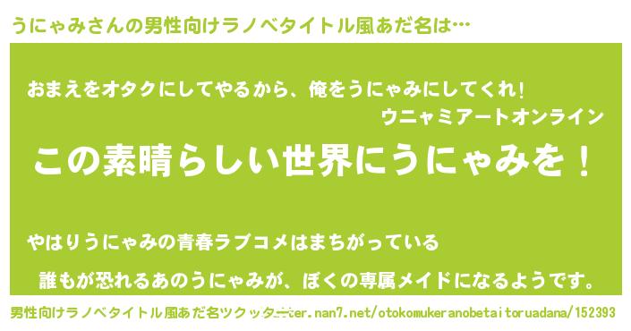 | ヘコむあだ名 | 『うにゃみ(震え声)』『うににゅー』 |