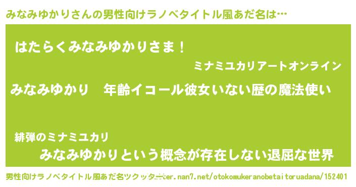 | ヒーロー風カッコイイあだ名 | 『ネオミナミユカリ』『仮面ミナダー』 |