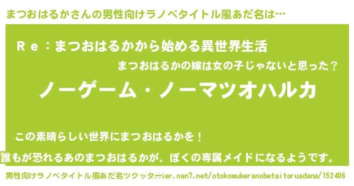 | 女子向けラノベタイトル風あだ名 | 『死神まつおはるかの再婚』 |