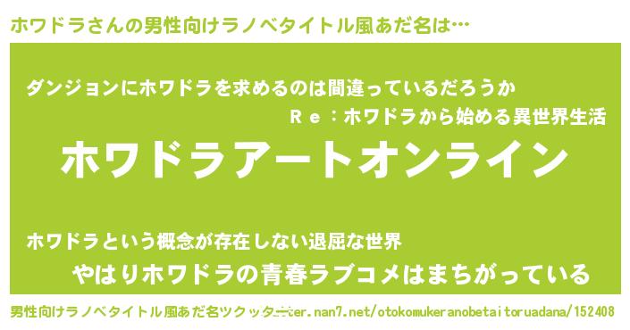 | 意味不明あだ名 | 『ペロリンホワドラ』『自称ホワドラ』 |