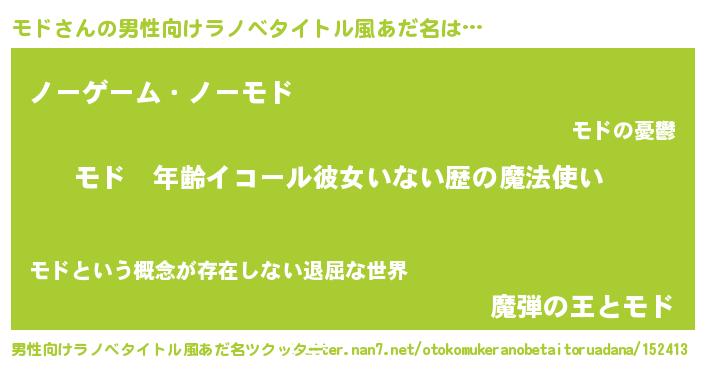 モドさんの男性向けラノベタイトル風あだ名をツクッター!