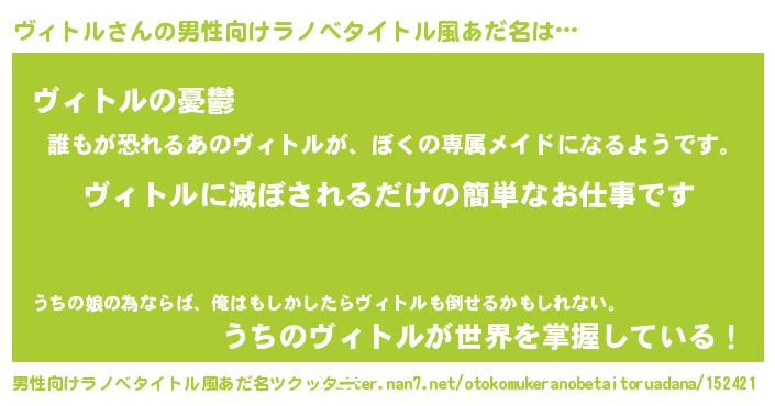 | ヘコむあだ名 | 『ヴィふぇ~』『ヴィトル(笑)』 |