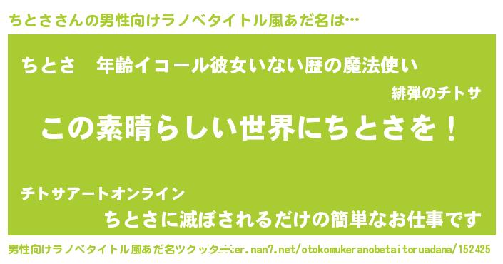 | 意味不明あだ名 | 『住所不定無職ちとさ(56歳)』 |