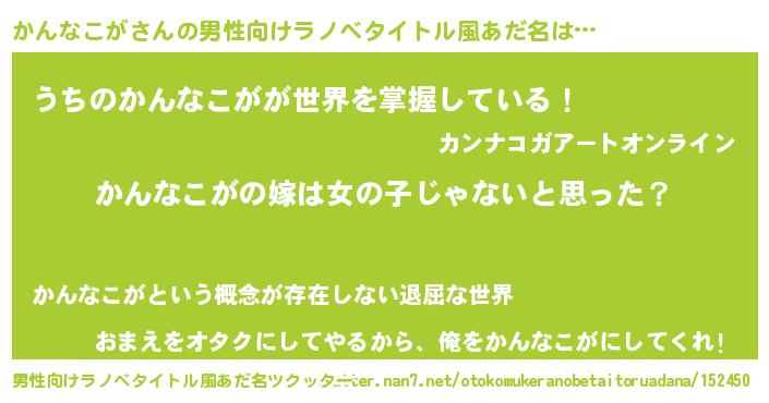 | 女子向けラノベタイトル風あだ名 | 『かんなこが様がみてる』 |
