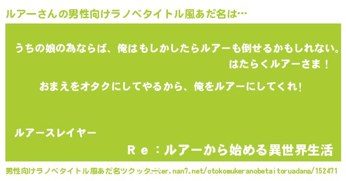 | ポケモン風あだ名 | 『ルックウザ』『ルアーダネ』 |