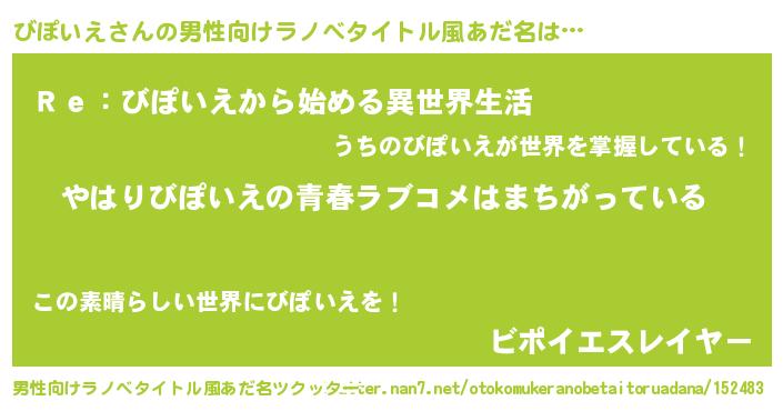 | ヘコむあだ名 | 『牛乳』『びぽぷりん』『びぽにー』 |
