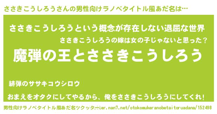| ヘコむあだ名 | 『ささきこうしろう(笑)』『ささお』 |