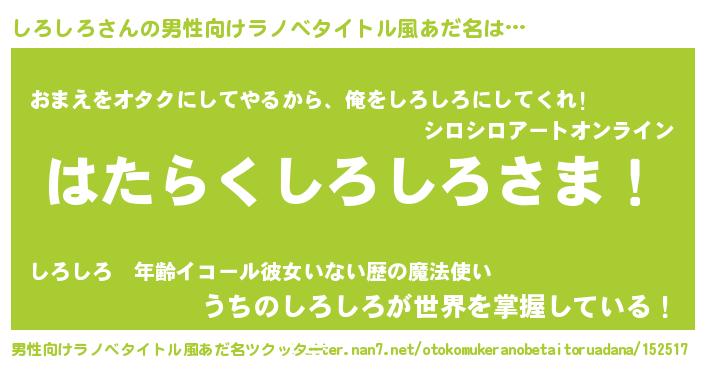| ヘコむあだ名 | 『しろにー』『酢こんぶ』『しろを』 |