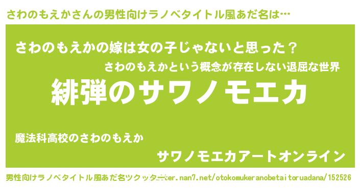 さわのもえかさんの男性向けラノベタイトル風あだ名をツクッター!