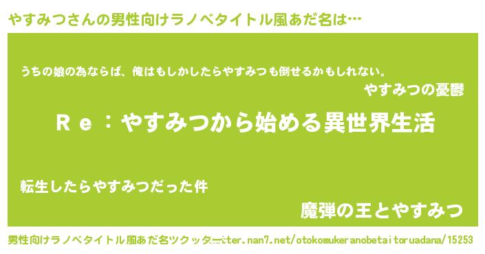 | 胡散臭い通販商品みたいなあだ名 | 『芸能人もオススメする高麗人参…その名も「やすみつ」』 |