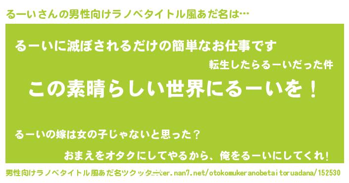 | 胡散臭い通販商品みたいなあだ名 | 『世界中を虜にした世界で10本だけ現存している希少なブランデー…その名も「るーい」』 |