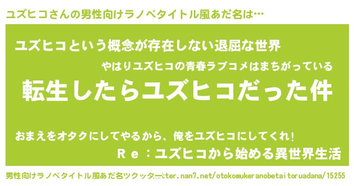 | ヒーロー風カッコイイあだ名 | 『ネオユズヒコ』『超時空戦士ユズヒコ』 |