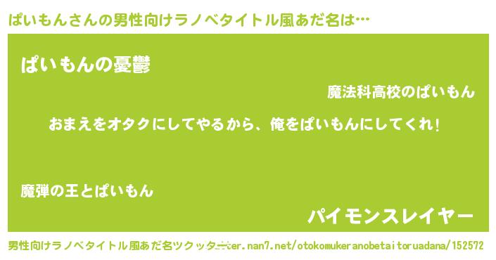 | 女子向けラノベタイトル風あだ名 | 『ぱいもん夫妻のなれそめ』 |