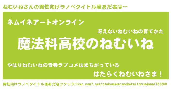 | 意味不明あだ名 | 『自称ねむいね』『ペロリンねむいね』 |