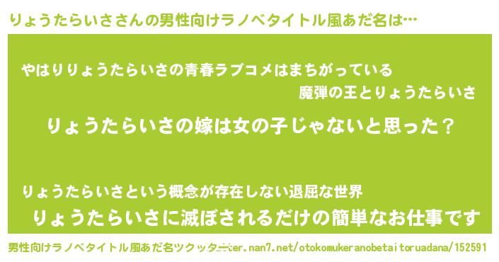| ヒーロー風カッコイイあだ名 | 『天弓騎士リョ』『仮面リョダー』 |