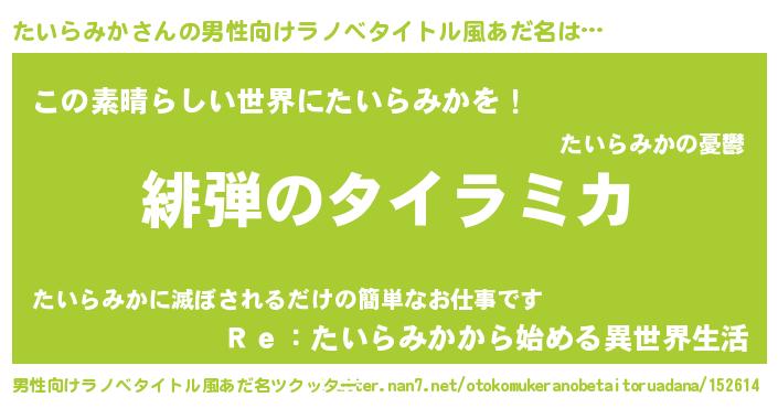 | ヒーロー風カッコイイあだ名 | 『仮面タイダー』『究極戦士タイラミカ』 |