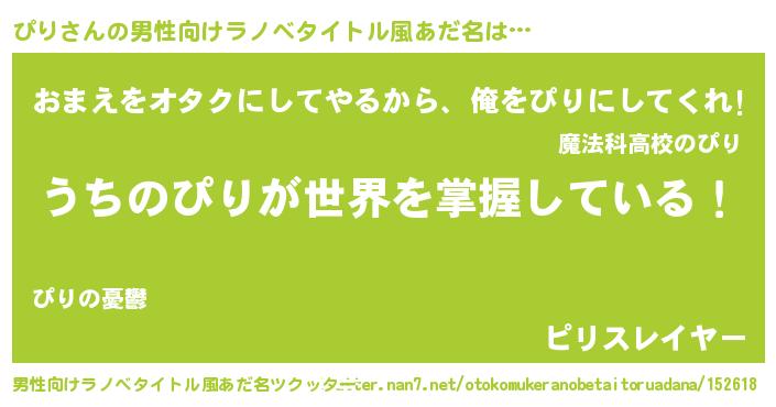 | ヘコむあだ名 | 『ぴりもー』『ぴりを』『ぴり(苦笑)』 |