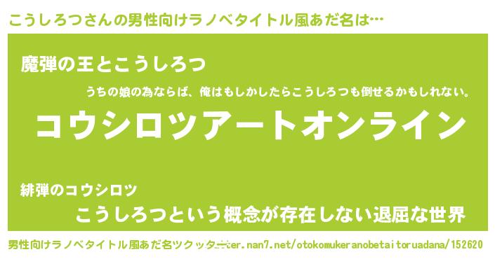 | 胡散臭い通販商品みたいなあだ名 | 『億万長者になれるブレスレット…その名も「こうしろつ」』 |